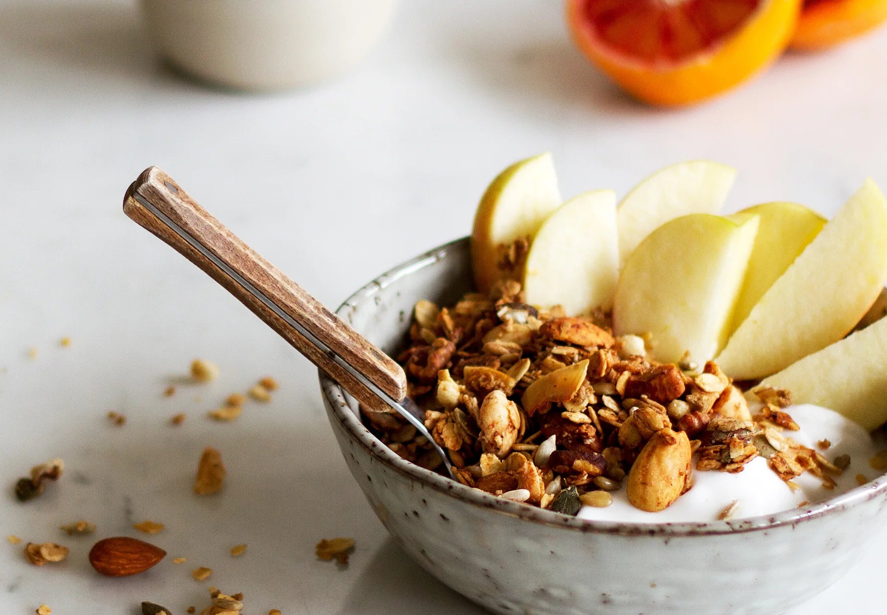 Unser Granola wird aus Bio-Vollkornhafer mit mindestens 30 % Nüssen, Körnern und Kernenhergestellt und es enthält nie mehr als 10 % (und dann auch nur natürlichem) Zucker. Es steckt voller Proteine, Ballaststoffe, Vitamine, Mineralien und langsamen Kohlenhydraten –für einen perfekten Start in den Morgen voller Energie und Konzentration.